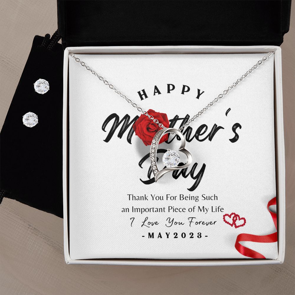 Mother's Day Rose Forever Necklace & Earrings Set