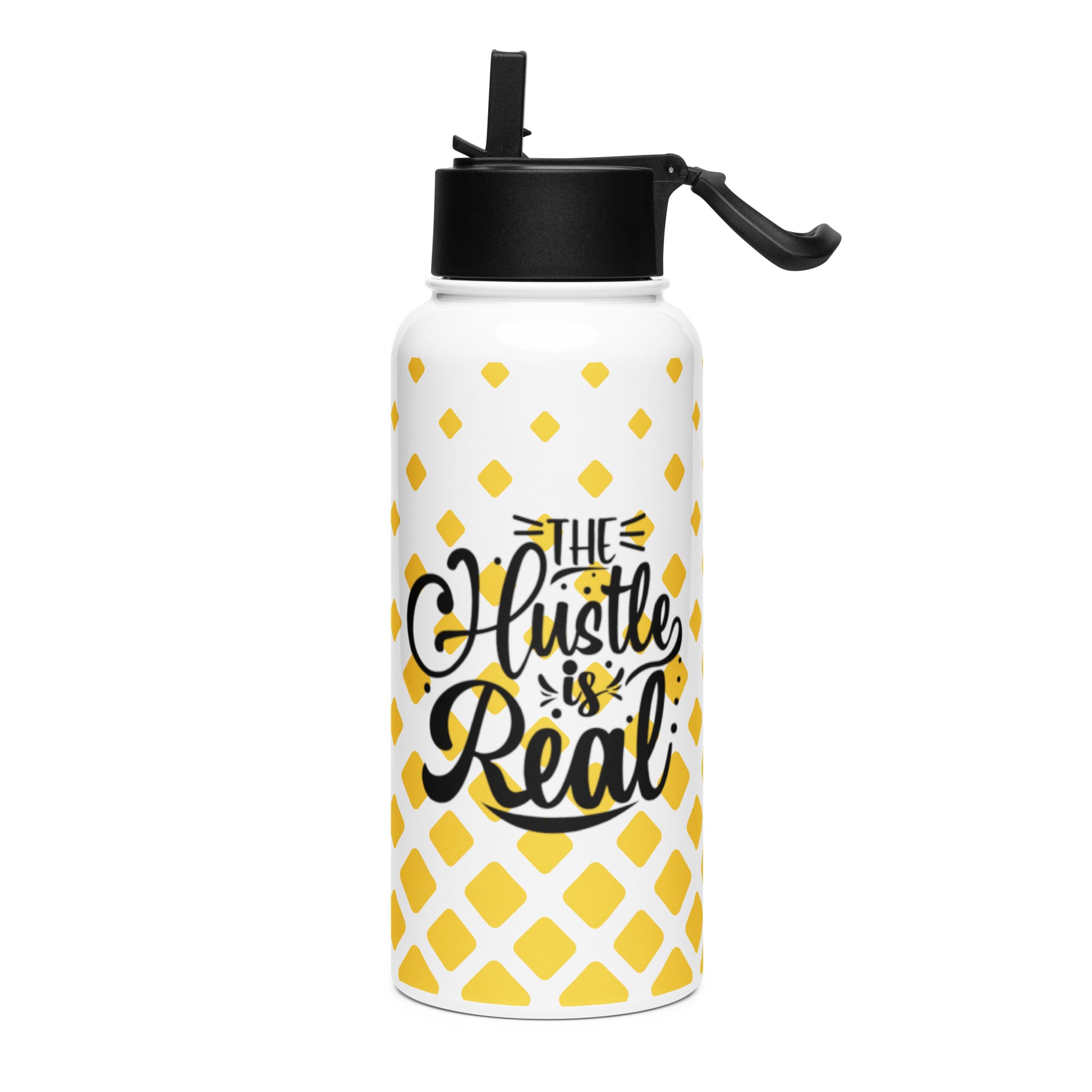 The Hustle is Real Stainless Steel Water Bottle with a straw lid