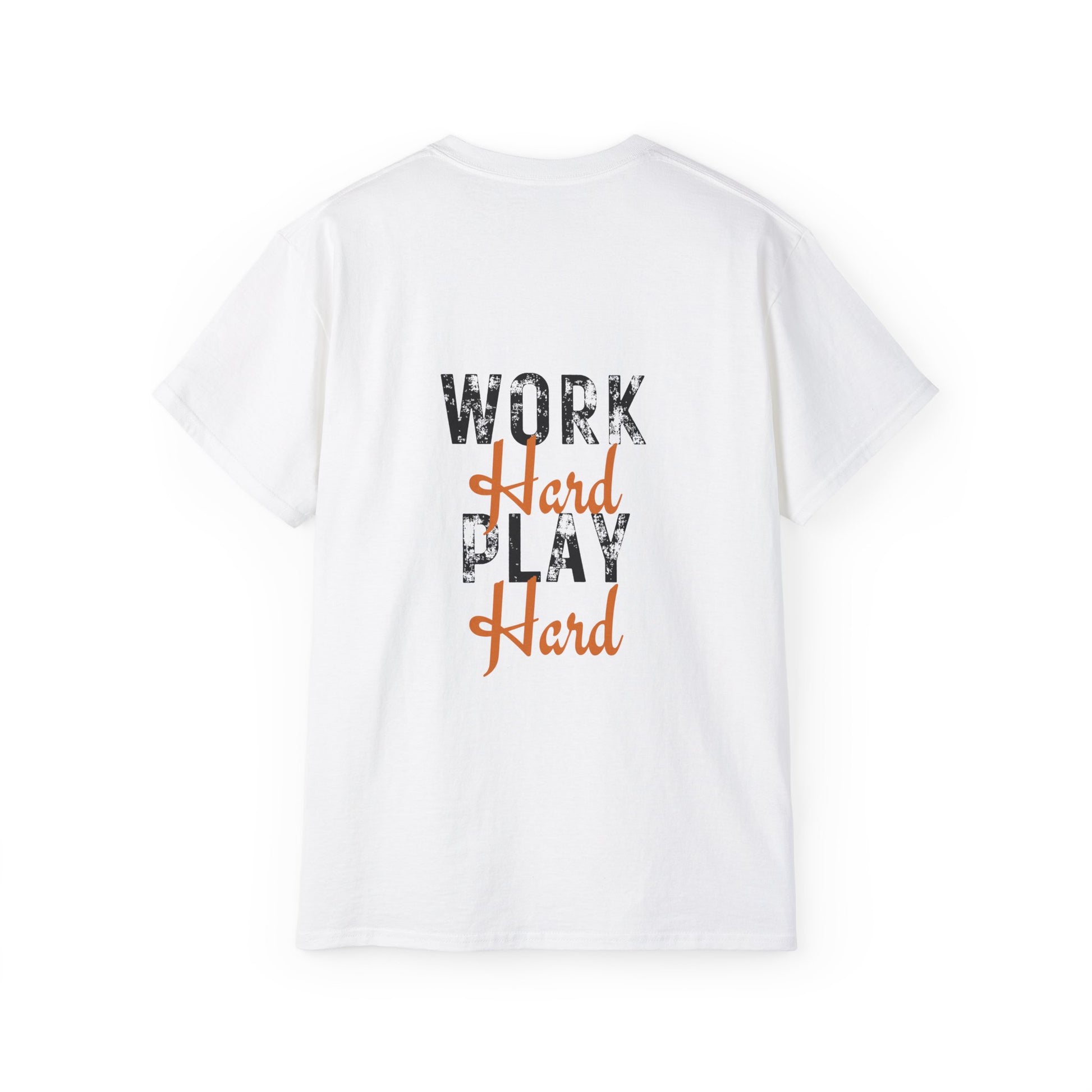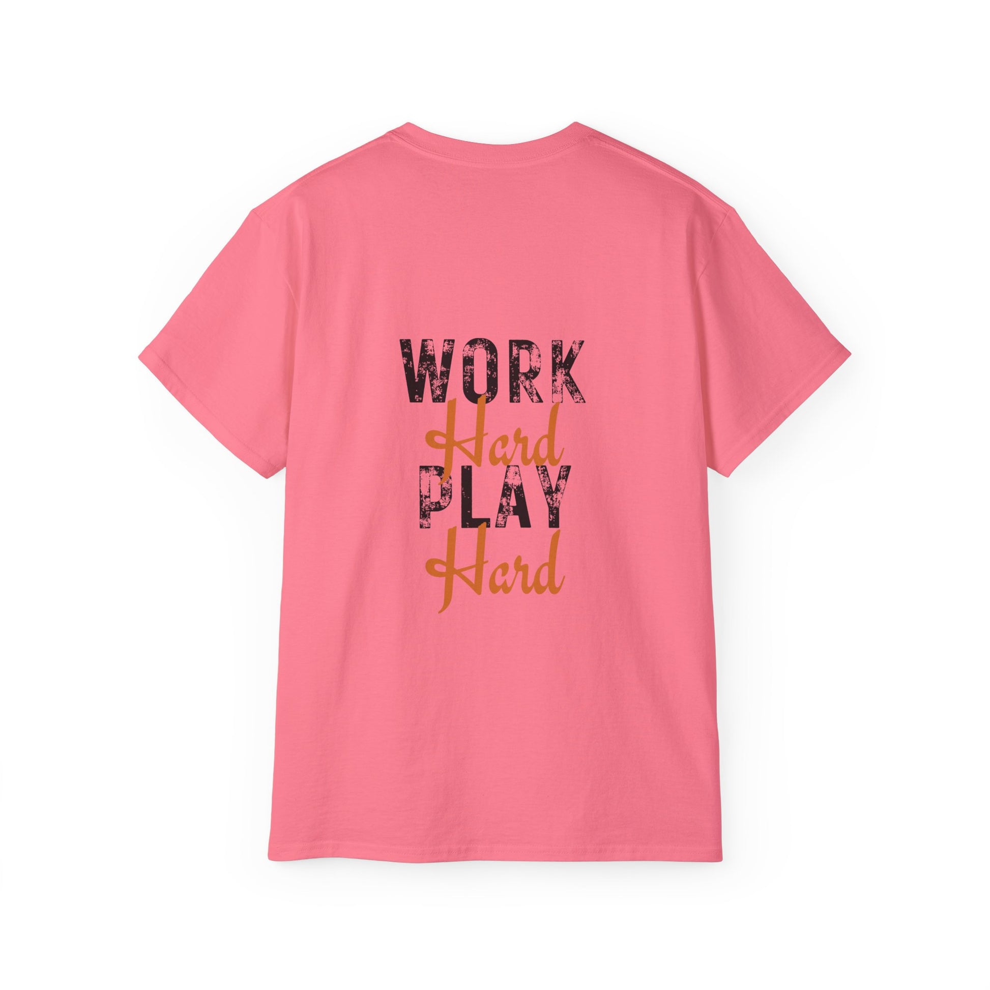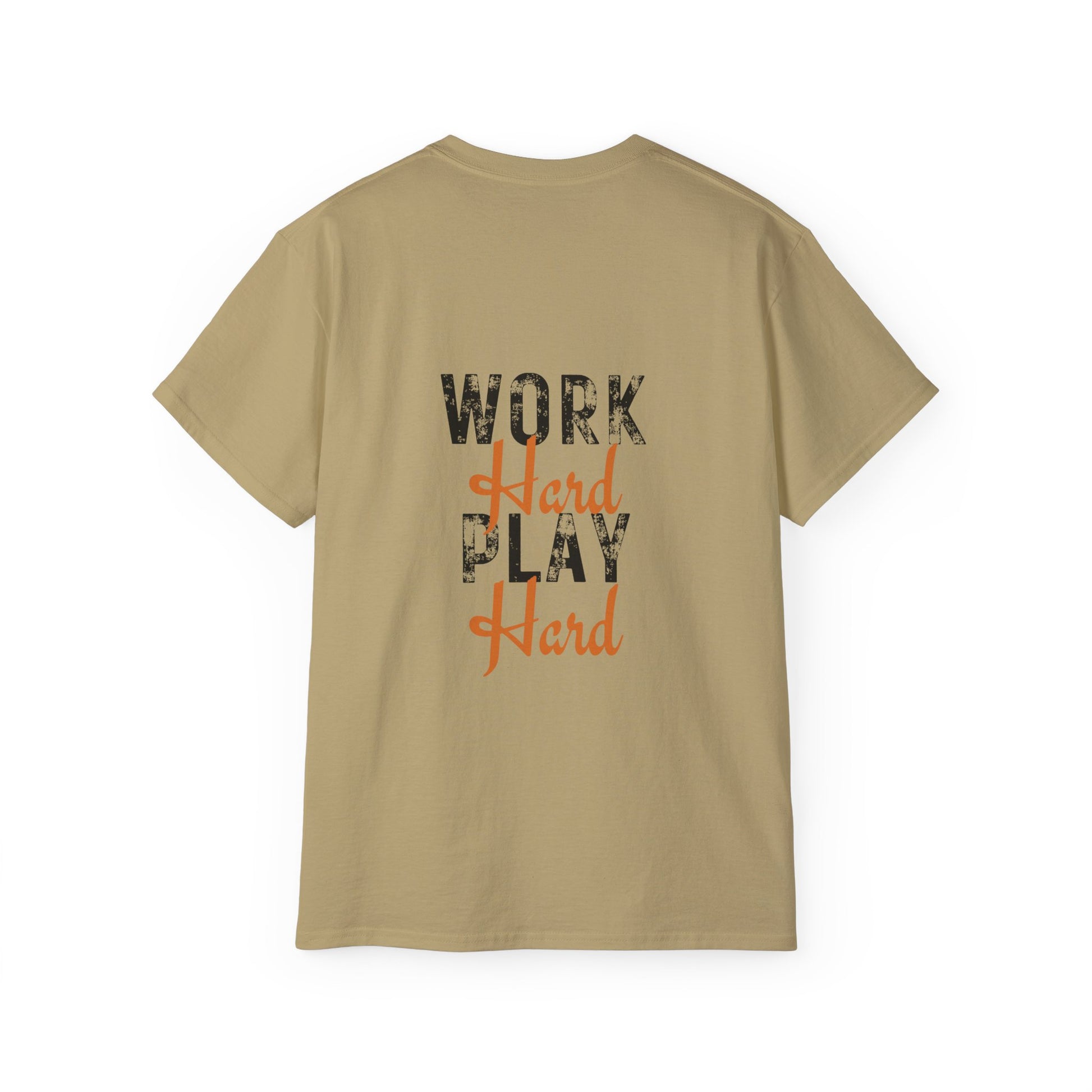 A versatile work hard play hard t-shirt in various colors and sizes, perfect for casual and semi-formal occasions. Made with 100% US cotton for long-lasting comfort and style. The medium fabric gives a thicker vintage feel and is environmentally-friendly manufactured.