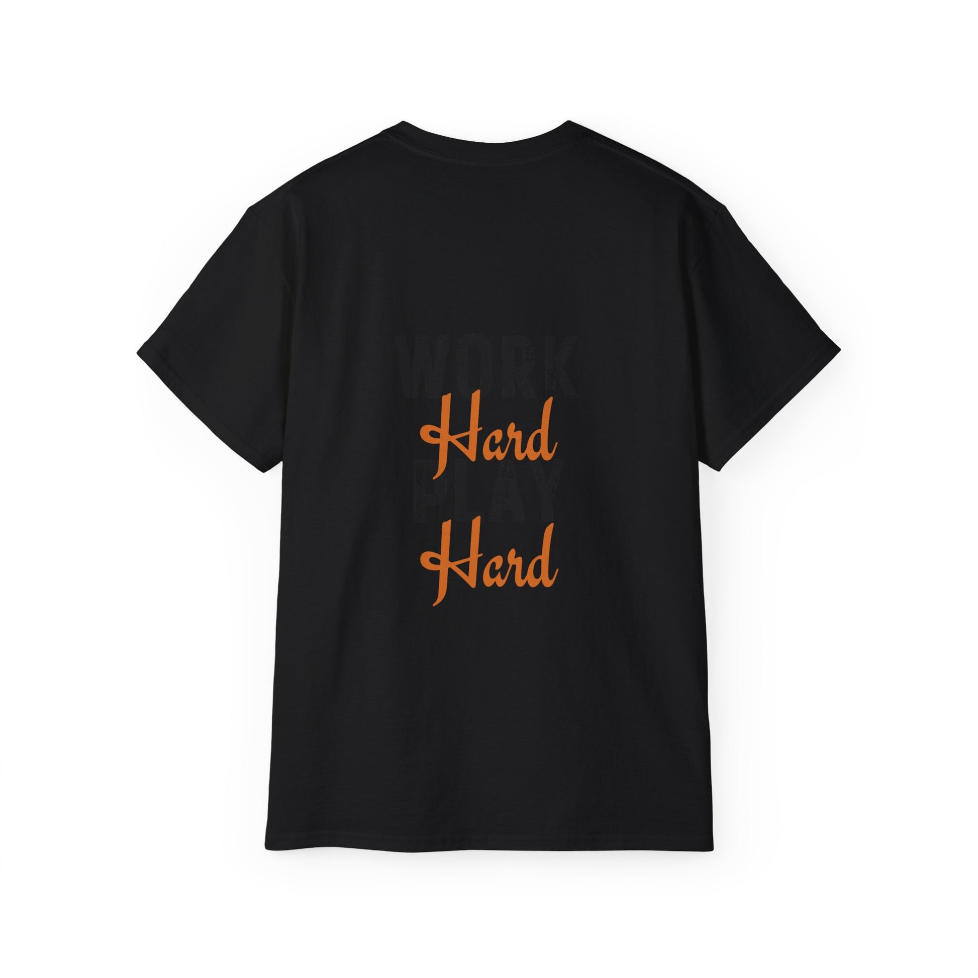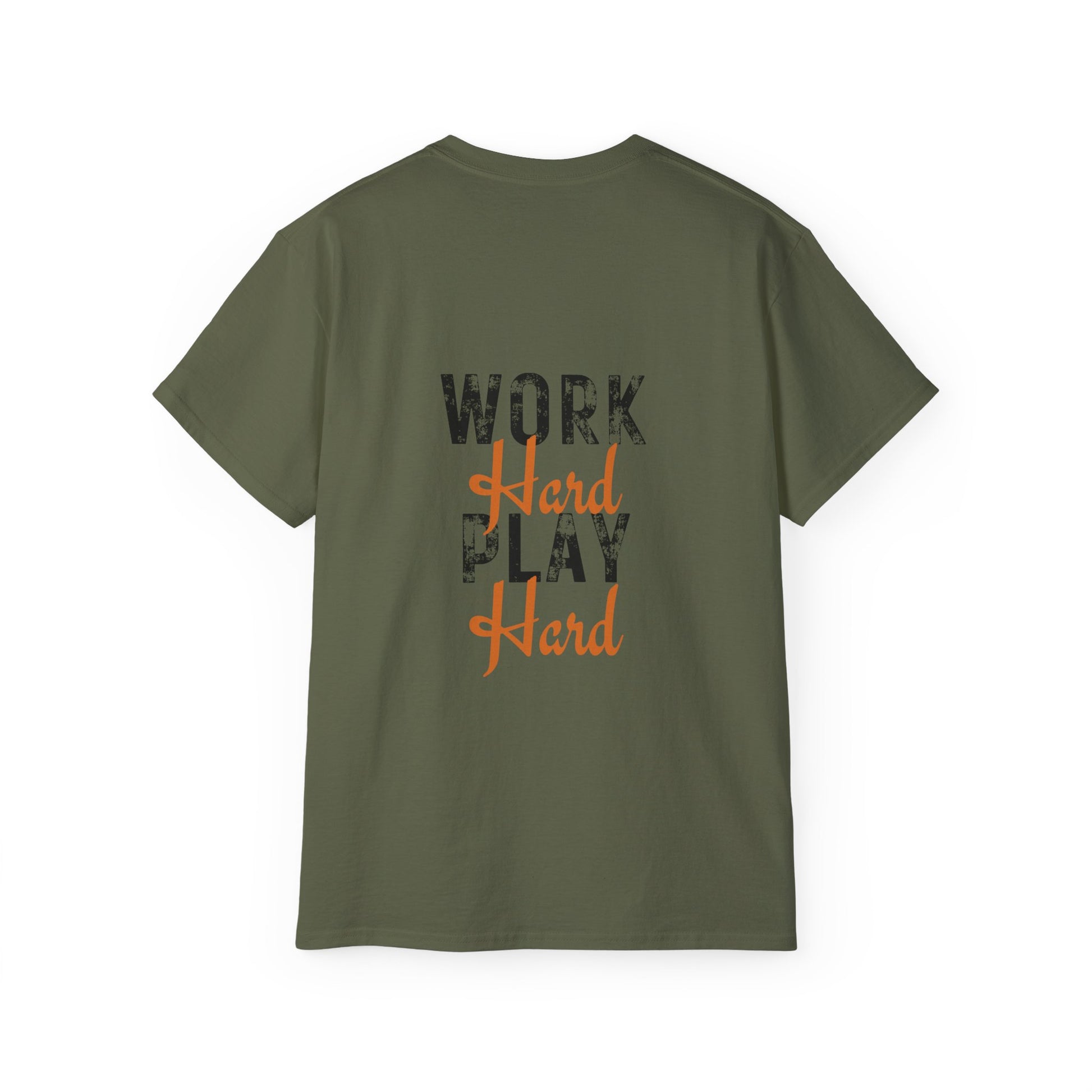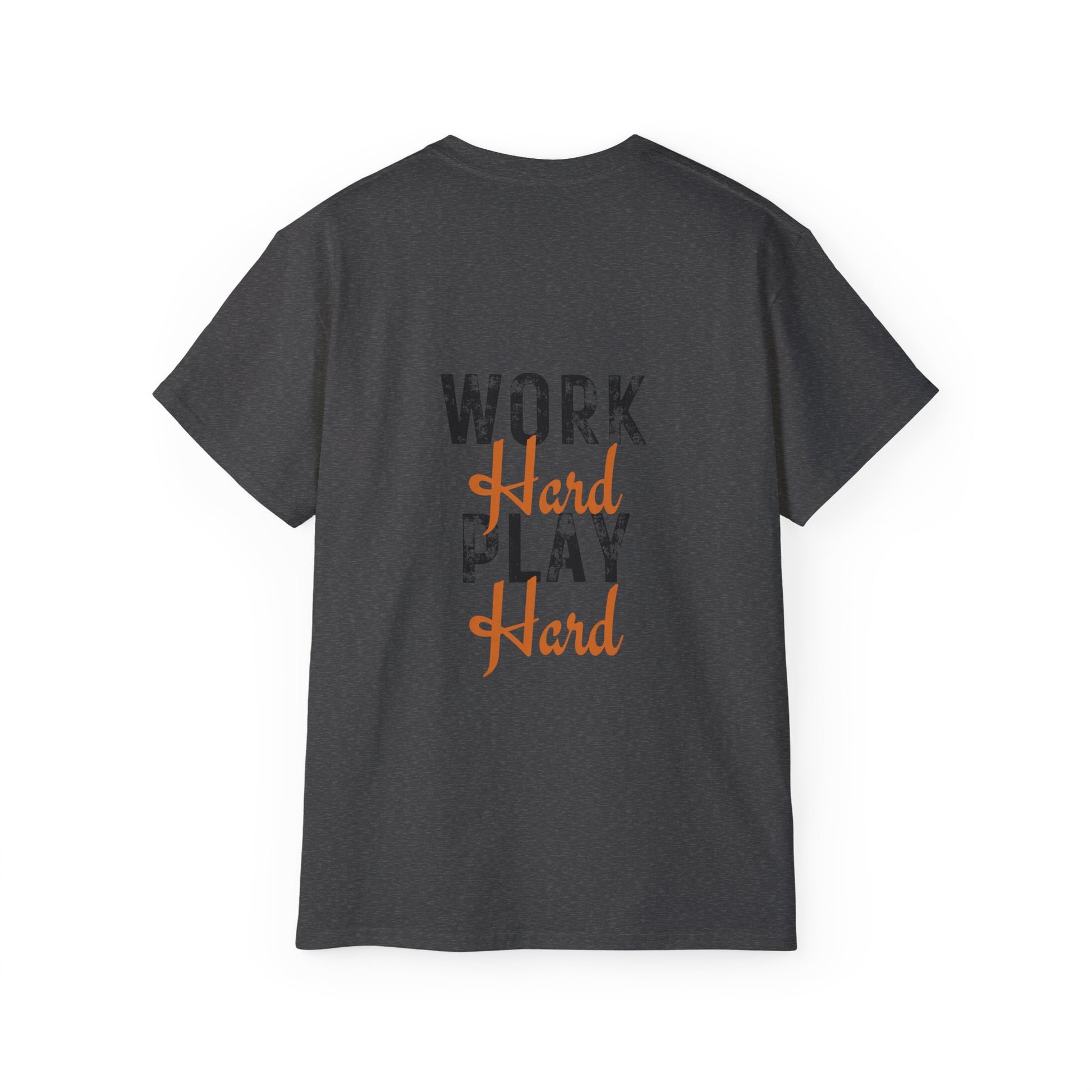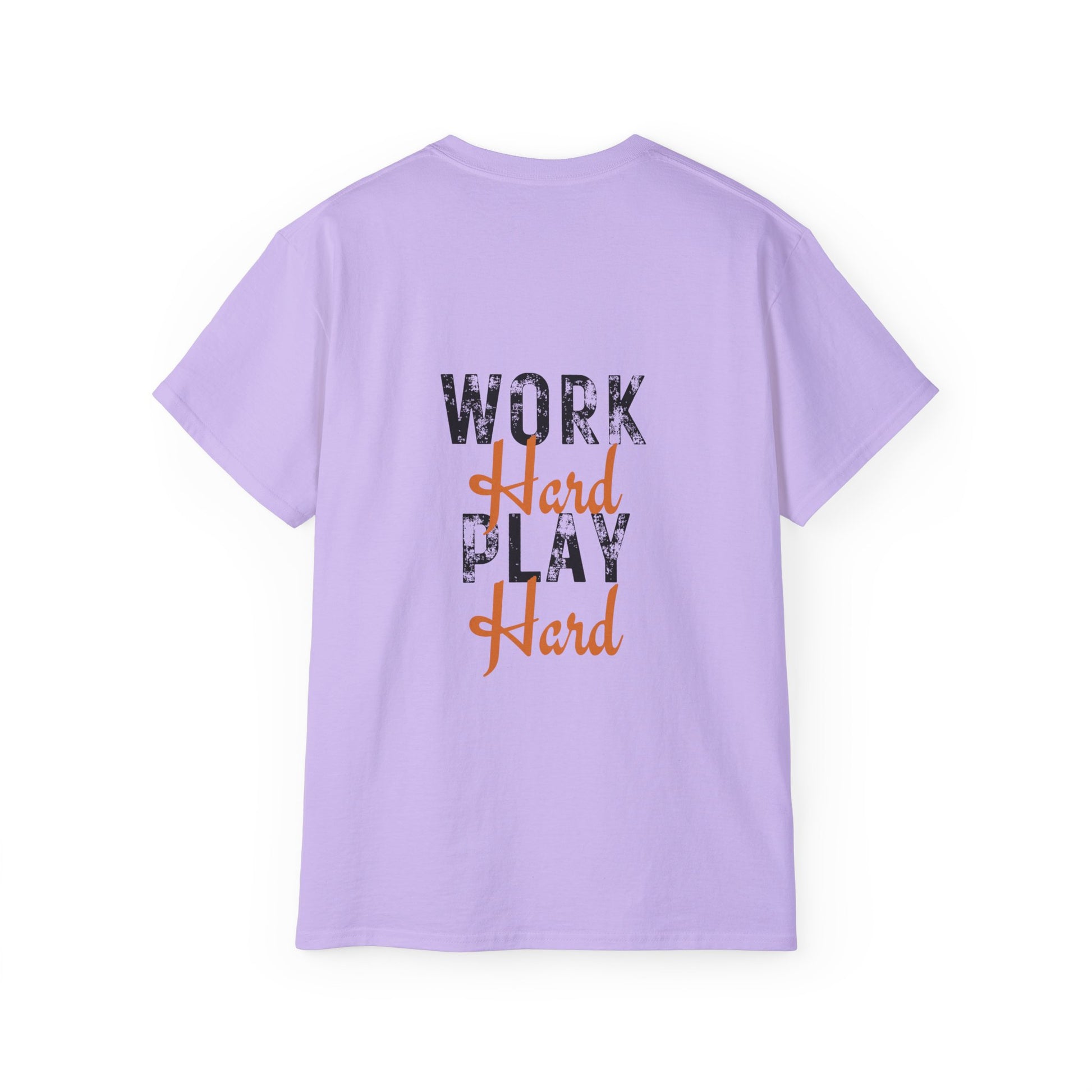 A versatile work hard play hard t-shirt in various colors and sizes, perfect for casual and semi-formal occasions. Made with 100% US cotton for long-lasting comfort and style. The medium fabric gives a thicker vintage feel and is environmentally-friendly manufactured.